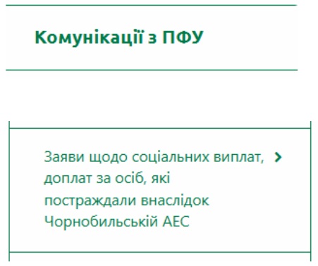 1. Комунікації з ПФУ Заяви щодо соціальних виплат за осіб, які постраждали внаслідок Чорнобильській АЕС.