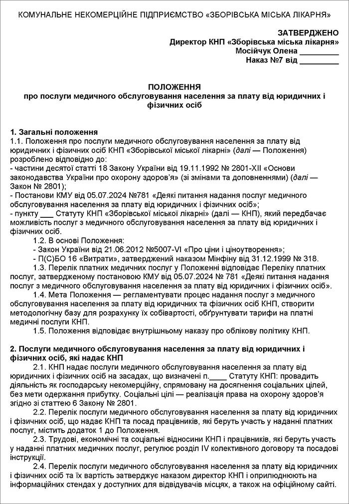 Зразок 1. Положення про платні послуги (Завантажити >>)
