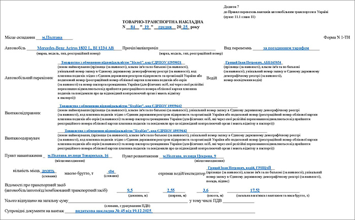 Зразок 1. Товарно-транспортна накладна (Завантажити >>)