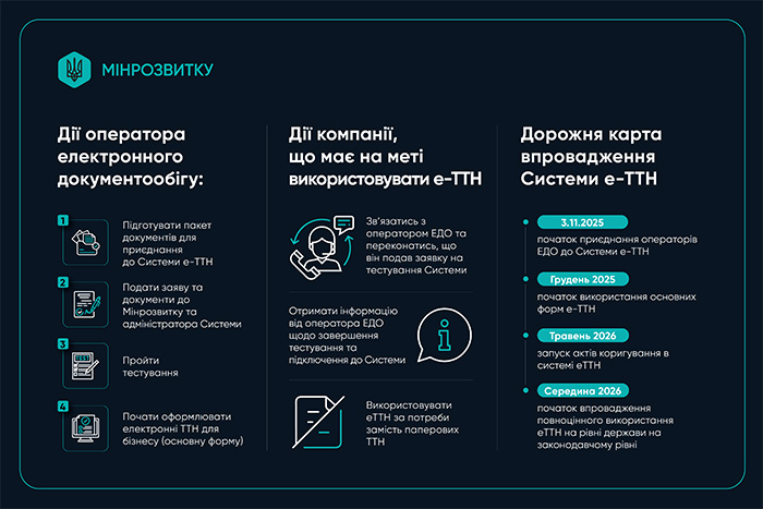 Таким чином, після приєднання операторів, у грудні 2025 року очікується реєстрація перших електронних товарно-транспортних накладних в системі е-ТТН.
