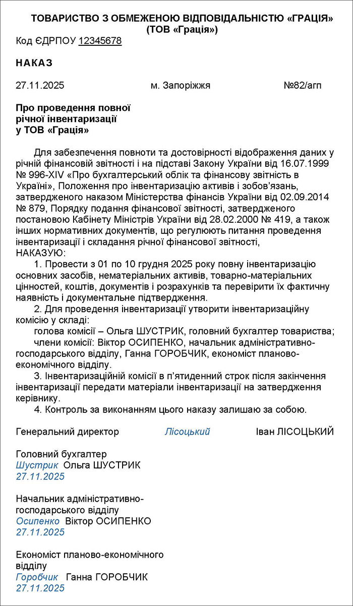 Наказ про проведення річної інвентаризації (Завантажити >>)