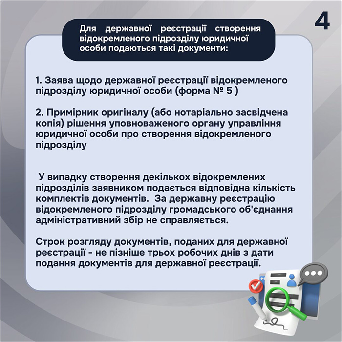 Як зареєструвати відокремлений підрозділ і які документи подати? В інфографіці Мінʼюсту зібрано ключові вимоги для проходження державної реєстрації.