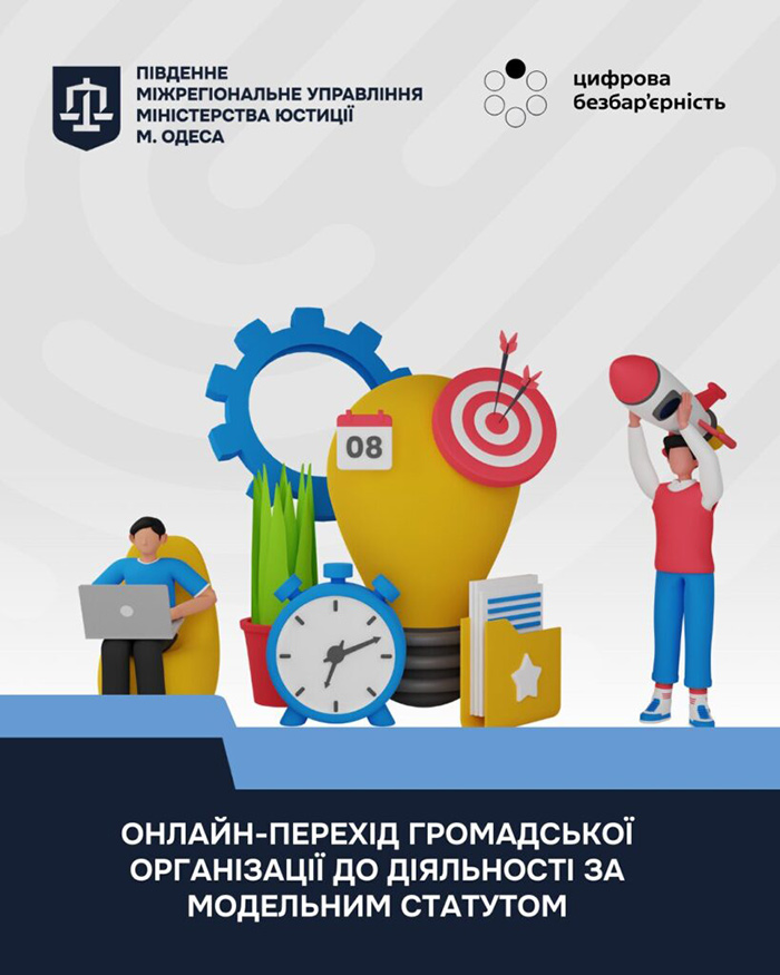 Південне міжрегіональне управління Міністерства юстиції (м. Одеса) розповідає, що оцифрування реєстраційних процедур поступово змінює правила гри для громадського сектору, роблячи державні сервіси простішими, зрозумілими та доступнішими для кожного. Нині громадські організації можуть перейти до роботи за модельним статутом без черг, паперової тяганини та фізичних бар’єрів – онлайн через портал Дія.