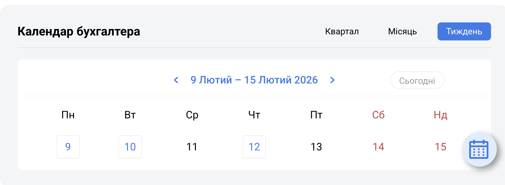Календар бухгалтера на 9 - 13 лютого 2026 року