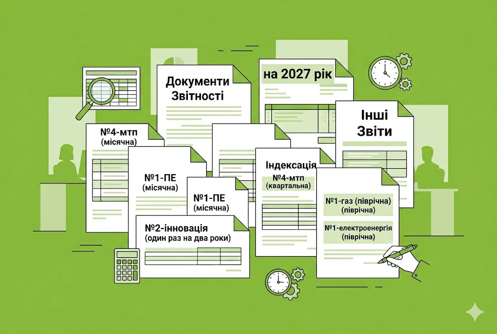 - №1-електроенергія (піврічна) "Звіт про вартість електроенергії, яка постачається споживачам" (Наказ Держстату від 10.04.2026 №87) зі звіту за І півріччя 2027 року. Тобто не пізніше 1 вересня 2027 року (далі не пізніше 1 березня).