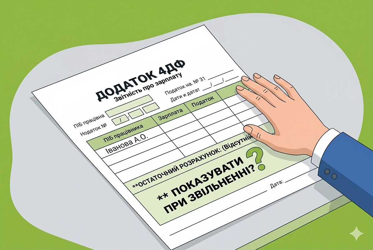 Відповідно до п. 4 розд. IV до Порядку у розд. І «Персоніфіковані дані про суми нарахованого (виплаченого) на користь фізичних осіб доходу та нарахованих (перерахованих) до бюджету податку на доходи фізичних осіб та військового збору» додатка 4 «Відомості про суми нарахованого доходу, утриманого та сплаченого податку на доходи фізичних осіб та військового збору» (далі – додаток 4ДФ) до Розрахунку, зокрема, передбачений рядок 06, де у графі 8 «Дата звільнення з роботи» проставляється дата звільнення фізичної особи з роботи (число, порядковий номер місяця, рік).