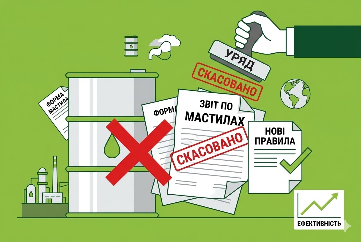 Документ передбачає скасування застарілої системи звітності у сфері збирання та утилізації відпрацьованих мастил (олив), яка створювала надмірне регуляторне навантаження на суб’єктів господарювання та дублювала інші процедури контролю.