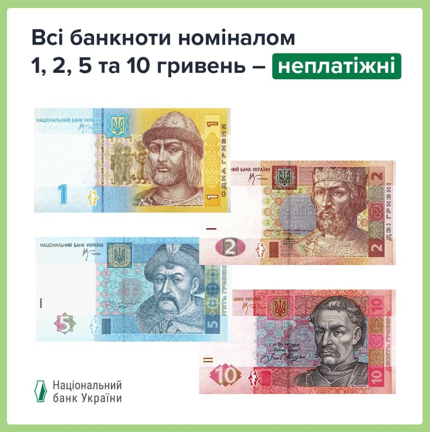 Нацбанк відповів на запитання: чи всі банкноти 1, 2, 5 та 10 гривень перестали бути засобами платежу з 2 березня?