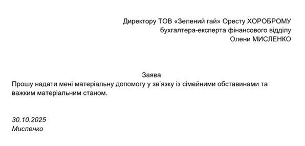 - залежно від потреби (надається в розмірі, зазначеному у заяві працівника).