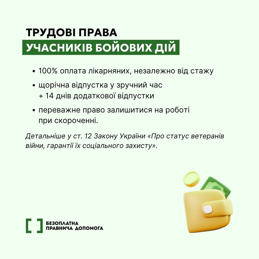 Безоплатна правнича допомога наголошує, що ветерани війни мають низку трудових прав, передбачених законом.