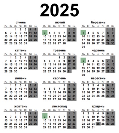 Для зручності пояснень див. календар на 2025 рік. Зверніть увагу на чотири дати, виділені кольором: 3 лютого, 3 березня, 2 червня, 3 листопада.