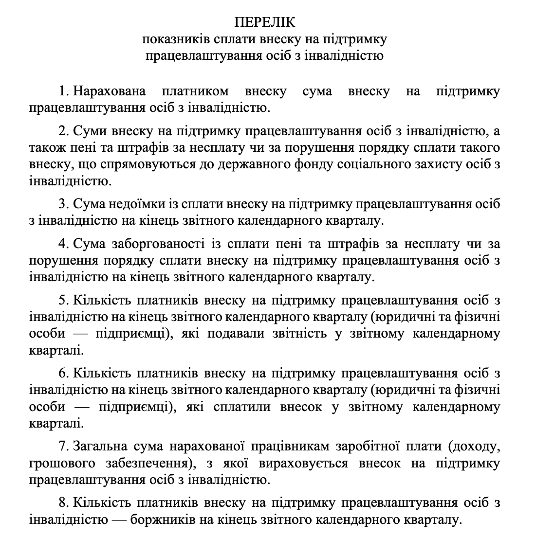 1. перелік показників сплати внеску на підтримку працевлаштування осіб з інвалідністю. На сайті КМУ вже зʼявився текст постанови від 17.12.2025 №1672.