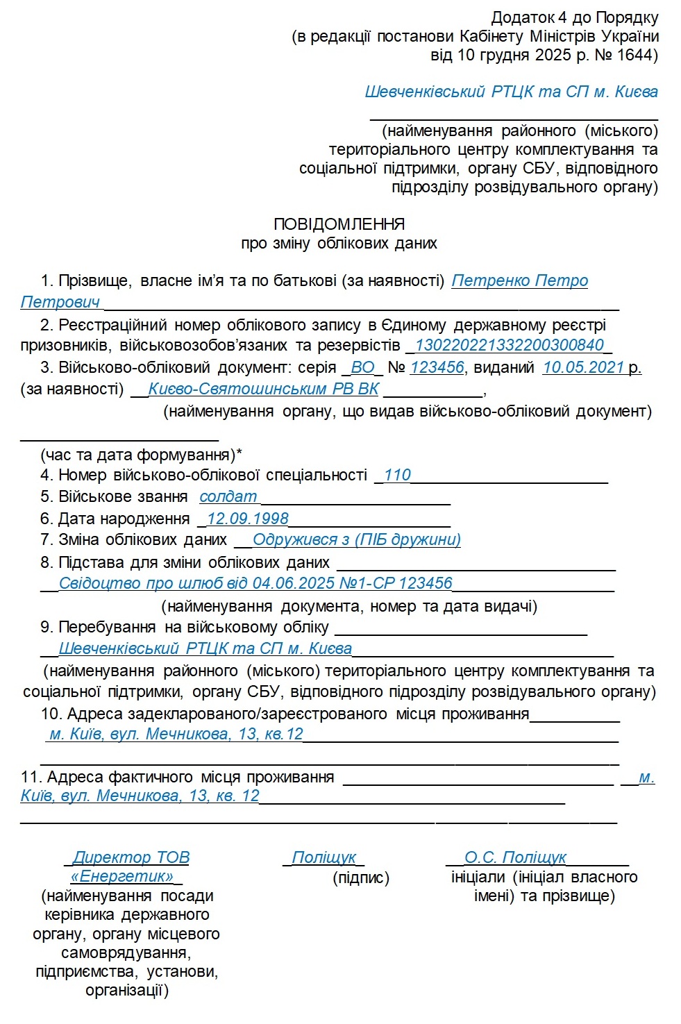 Заповнення окремих реквізитів повідомлення до ТЦК про зміну облікових даних