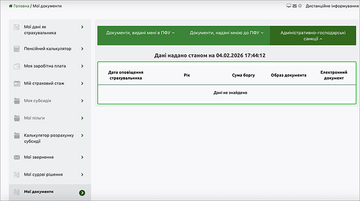Як на сайті е-послуг ПФУ перевірити нараховані штрафи?