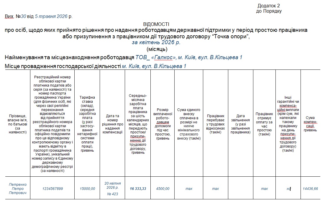 Для отримання допомоги роботодавець або уповноважена ним особа подає щомісяця до 10 числа за попередній місяць відомості за формою згідно з додатком 2 до Порядку № 449 (див. Зразок 2).