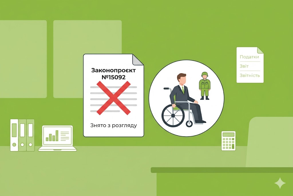 31 березня 2026 року ВРУ зняла з розгляду законопроєкт №15092 "Про внесення змін до Закону України "Про основи соціальної захищеності осіб з інвалідністю в Україні" щодо врегулювання питання розрахунку робочих місць для працевлаштування осіб з інвалідністю". Це зазначено у карточці законопроєкту.