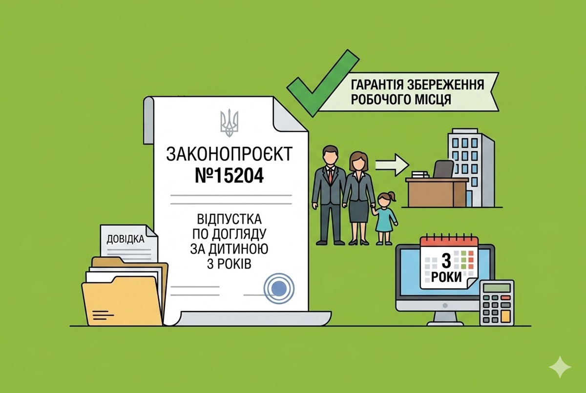 На сайті ВРУ зареєстровано законопроєкт № 15204 від 27.04.2026 щодо гарантування збереження робочого місця особам, які перебувають у відпустці для догляду за дитиною до досягнення нею трирічного віку.