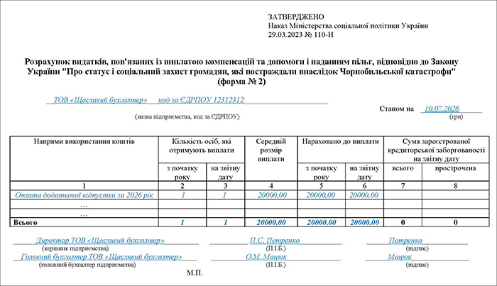 Важливо! Оскільки бюджетний рік починається з 1 січня, то для отримання фінансування на оплату «чорнобильських» відпусток у 2026 році подати до ПФУ графік «чорнобильських» відпусток слід не пізніше 31 жовтня 2025 року.
