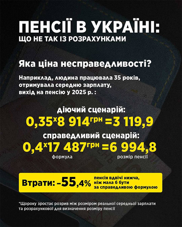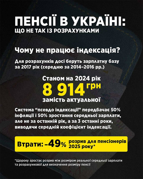 У 2025 році розрив між реальною середньою зарплатою в країні та тією, яку використовують для розрахунку пенсій, уже сягає 49%. Тобто майже половину свого потенційного доходу люди втрачають лише через те, що держава не оновлює базу.