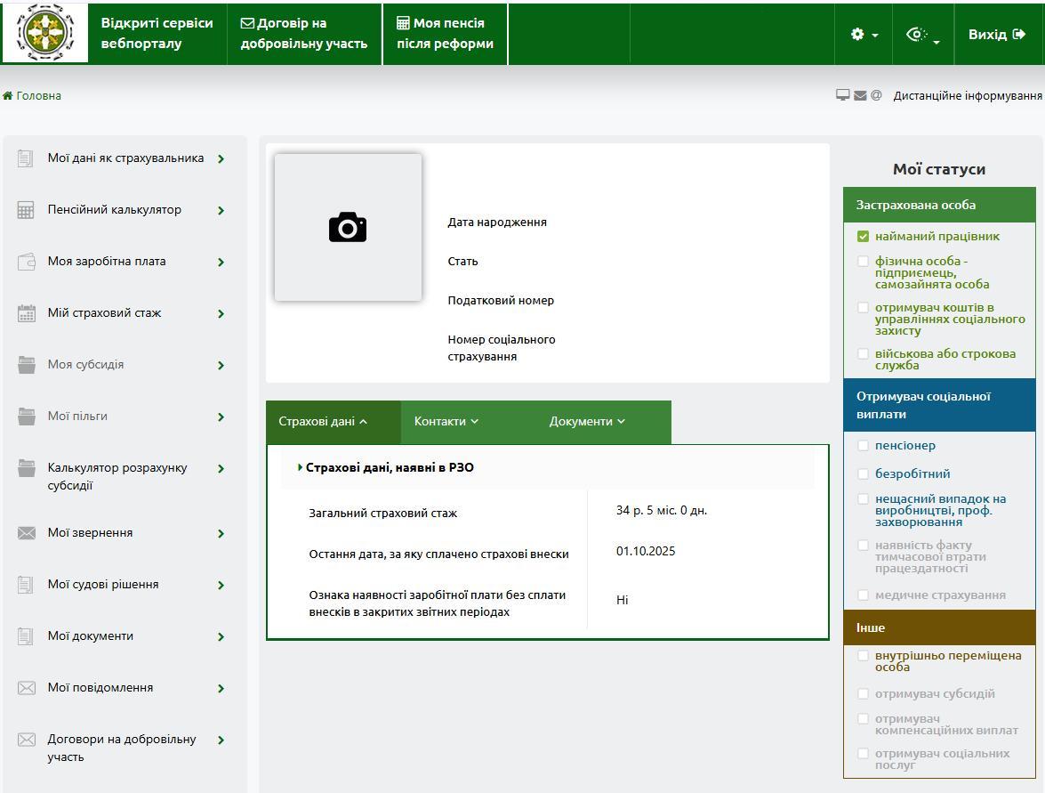 7. Вхід в особистий кабінет на вебпорталі електронних послуг Пенсійного фонду України буде виконано автоматично.