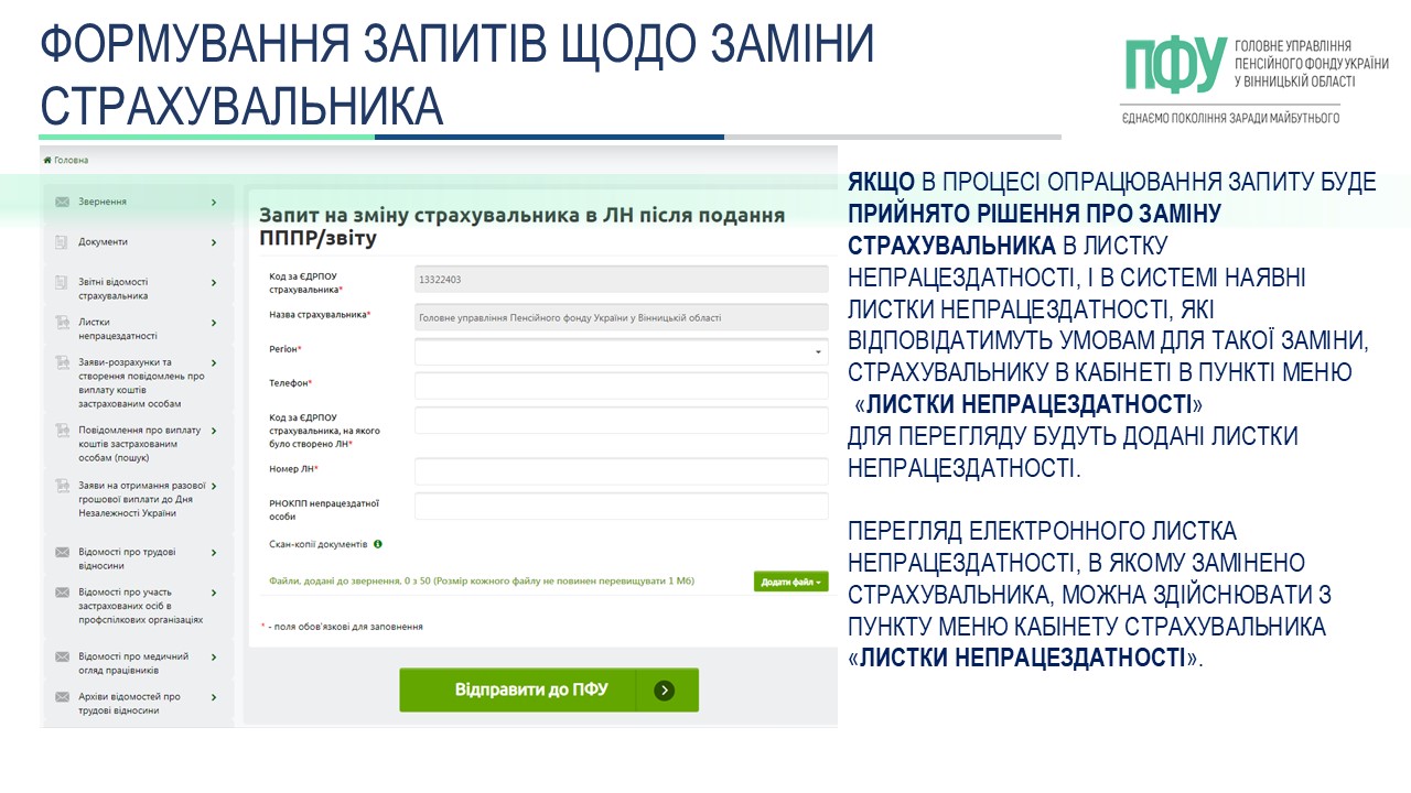 Слухачів також поінформували про алгоритм формування запиту на створення копій листків непрацездатності, що дозволить правонаступнику формувати заяви-розрахунок та здійснити страхові виплати застрахованим особам.