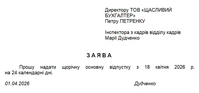 Як ми вже зазначили вище, за наявності графіка відпусток заява потрібна лише у разі, якщо працівник бажає скористатися відпусткою поза таким графіком. Або перенести її чи продовжити через певні обставини.