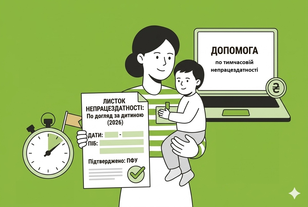Допомога по тимчасовій непрацездатності у разі захворювання матері або іншої особи, яка фактично здійснює догляд за дитиною віком до трьох років або за дитиною з інвалідністю віком до 18 років, надається застрахованій особі, яка здійснює догляд за дитиною, з першого дня за весь період захворювання в порядку та розмірах, встановлених цим Законом. При цьому, у разі хвороби матері або іншої особи, яка фактично здійснює догляд за дитиною, листок непрацездатності видається третій особі, яка буде доглядати в цей період за здоровою дитиною віком до трьох років або за дитиною з інвалідністю віком до 18 років.