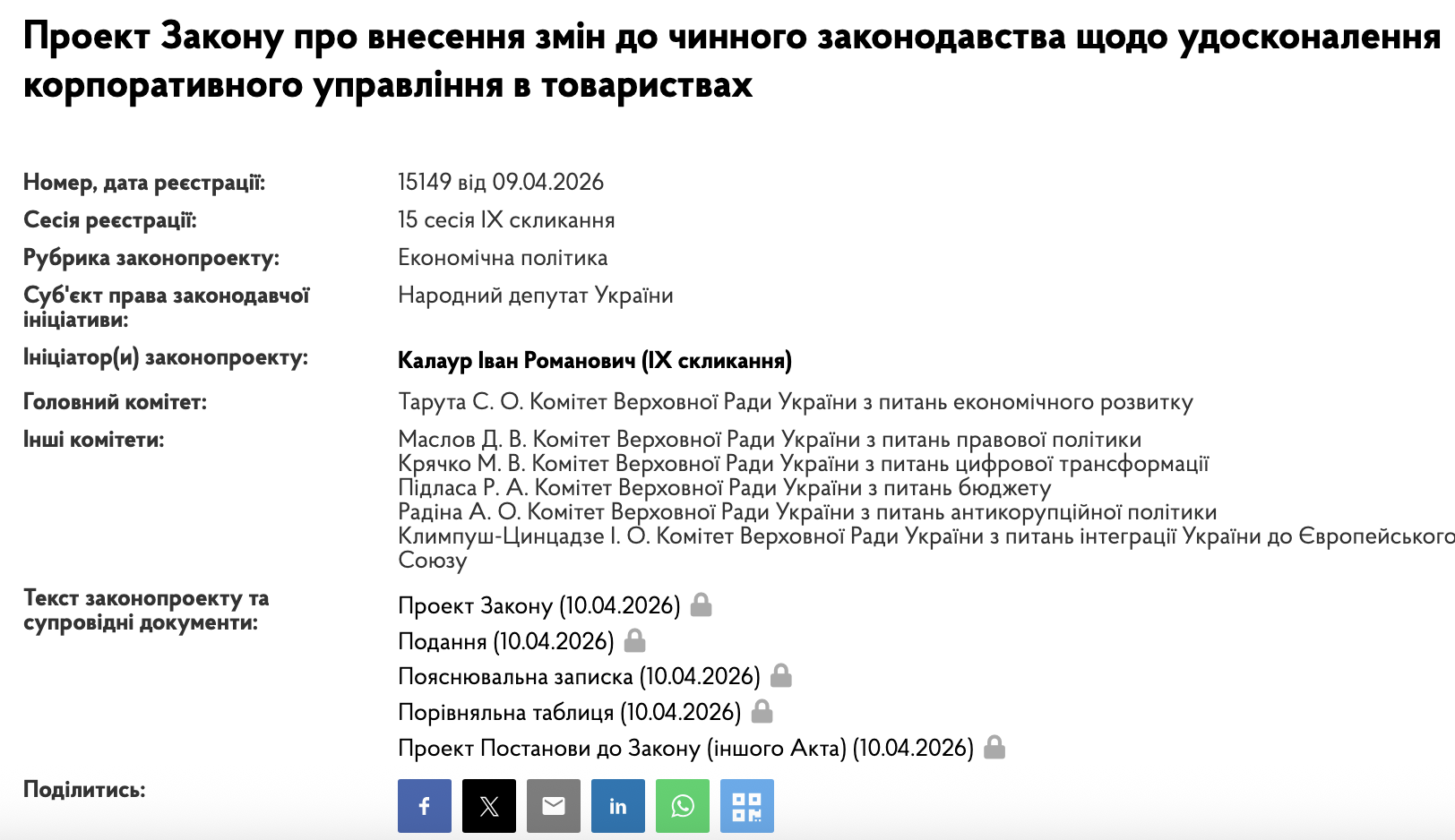 - чинного законодавства щодо удосконалення корпоративного управління в товариствах (законопроєкт №15149).