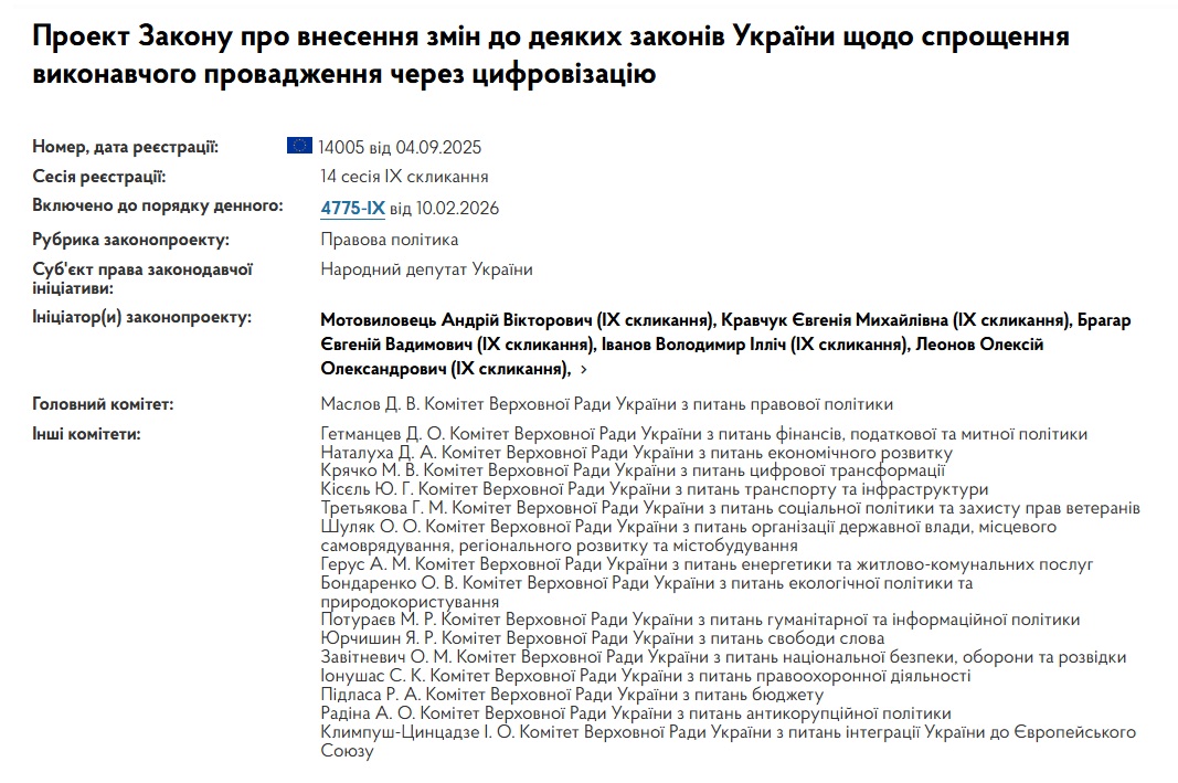 Головним з опрацювання відповідного законопроєкту за реєстр. №14005 був Комітет з питань правової політики.