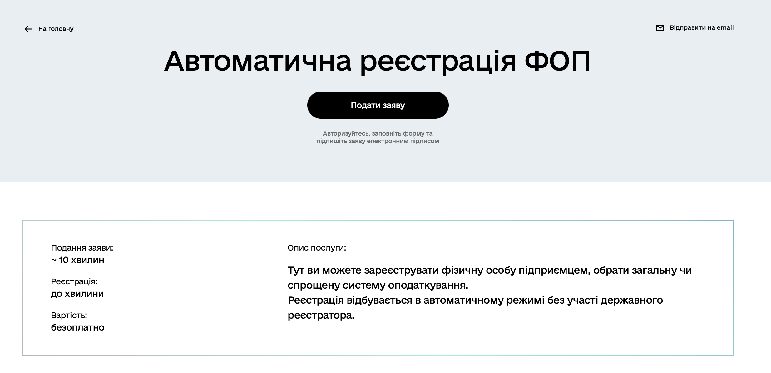 2. Заповніть онлайн-форму на отримання послуги та підпишіть заяву електронним підписом фізичної особи.