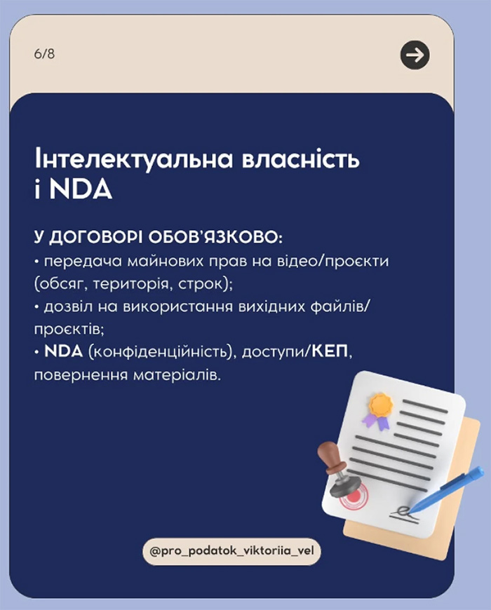 - які документи підписати, щоб захистити себе та свій бізнес – угоди про інтелектуальну власність, NDA, акти приймання-передачі, інвойси;