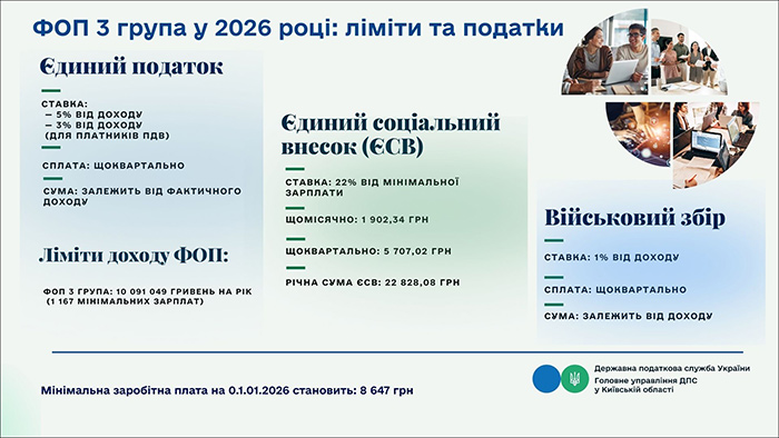 Водночас збільшується річний ліміт доходу, який прив’язаний до мінімальної заробітної плати і у 2026 році становить 10 091 049 грн (1167 МЗП), що значно розширює можливості для ведення бізнесу.