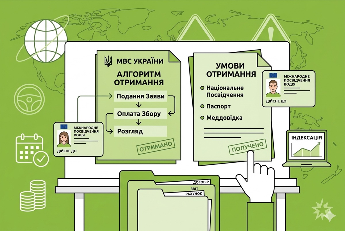 Нагадуємо, що міжнародне посвідчення водія не є дійсним без національного. Тому керувати транспортним засобом можна лише за наявності постійного національного та міжнародного посвідчення водія (останнє за потреби за кордоном). Воно видається у формі паперової книжечки терміном на 3 роки, але не більше терміну дії національного посвідчення водія. З цим документом можна керувати транспортним засобом у понад 100 країнах світу. Їхній перелік доступний для перегляду на нашому сайті в розділі Послуги. Термін надання послуги до 5 робочих днів.