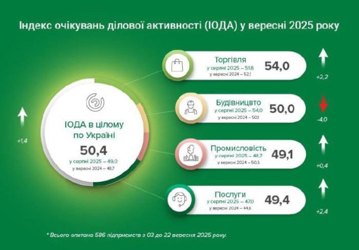 У вересні 2025 року ІОДА зріс до 50.4 з 49.0 у серпні 2025 року та був вищий за рівень у вересні 2024 року (48.7).