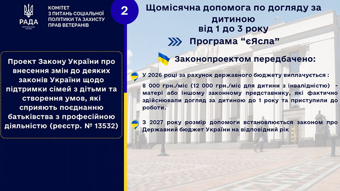 8 000 грн – допомога для догляду за дитиною «єЯсла» у разі працевлаштування матері ( у режимі повного робочого часу);
