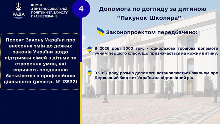 5 000 грн – одноразова грошова допомога учням перших класів «пакунок школяра».