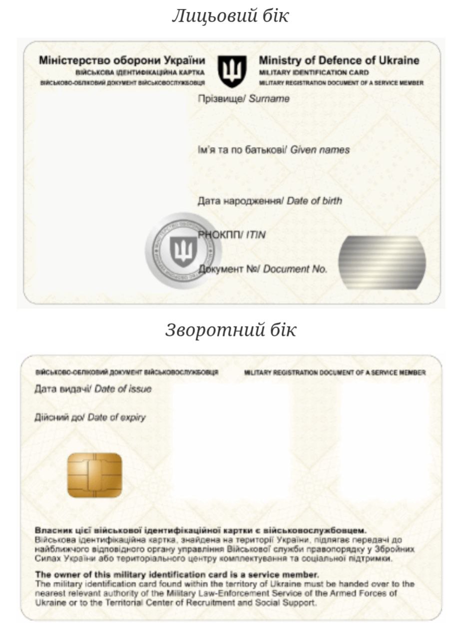 Військова ідентифікаційна картка та електронний військово-обліковий документ військовослужбовця мають однакову юридичну силу.