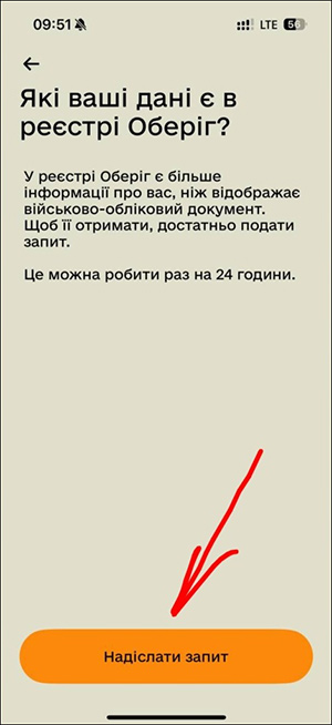 3. Надіслати запит – реєстр Оберіг сформує витяг і надішле його автоматично. Але подати запит можна раз на 24 години.