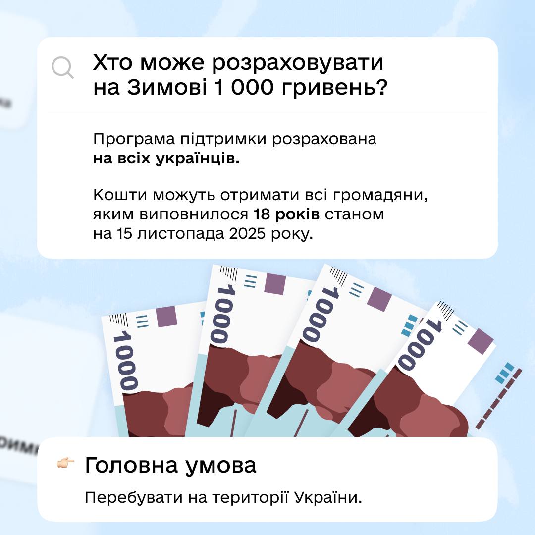 Зимова 1000 грн: хто отримує, як подати заявку і куди звертатися