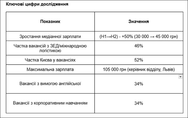 Порівняння першого та другого півріччя 2025 року показало значне підвищення заробітних пропозицій. Найбільший приріст зафіксовано серед диспетчерів (+52%) та логістів (+45%) – саме ці позиції відчувають найбільший дефіцит кадрів.