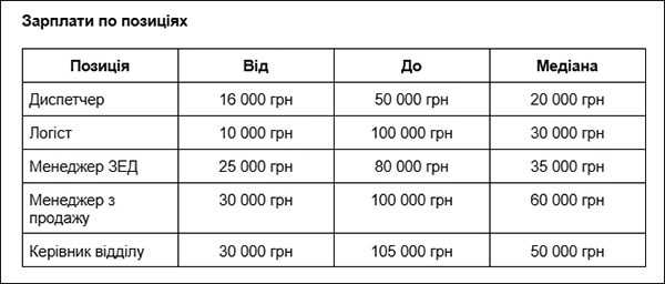 - менеджер із продажу транспортних послуг – 50 000−80 000 грн.