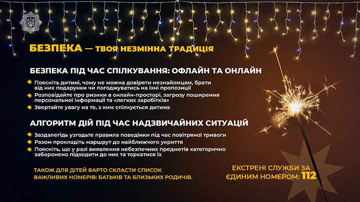 Уже зовсім незабаром розпочнуться зимові канікули. Для школярів – це період відпочинку, прогулянок і дозвілля. Щоб цей час минув без зайвих пригод, важливо заздалегідь нагадати дітям базові правила безпеки – вдома, на вулиці та в онлайн-просторі. МВС зібрали ключові поради для батьків про те, як зменшити ризики та зробити період канікул спокійнішим.