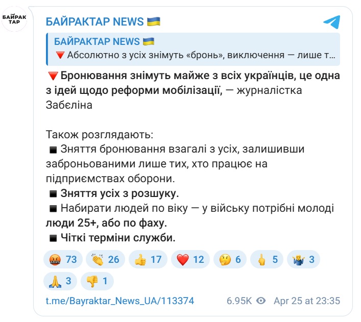 Наразі ці пропозиції перебувають на стадії обговорення. Офіційних рішень щодо впровадження цих правил поки що не прийнято, проте сам факт таких дискусій вказує на підготовку держави до зміни мобілізаційної стратегії.