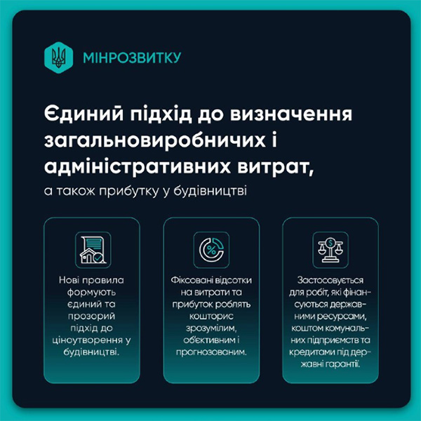 Міністерство розвитку громад та територій України на своєму телеграм-каналі розповідає, що згідно з Постановою Кабінету Міністрів України про «Деякі особливості визначення вартості будівництва в умовах воєнного стану» нові правила формують єдиний підхід до визначення ціноутворення у будівництві.