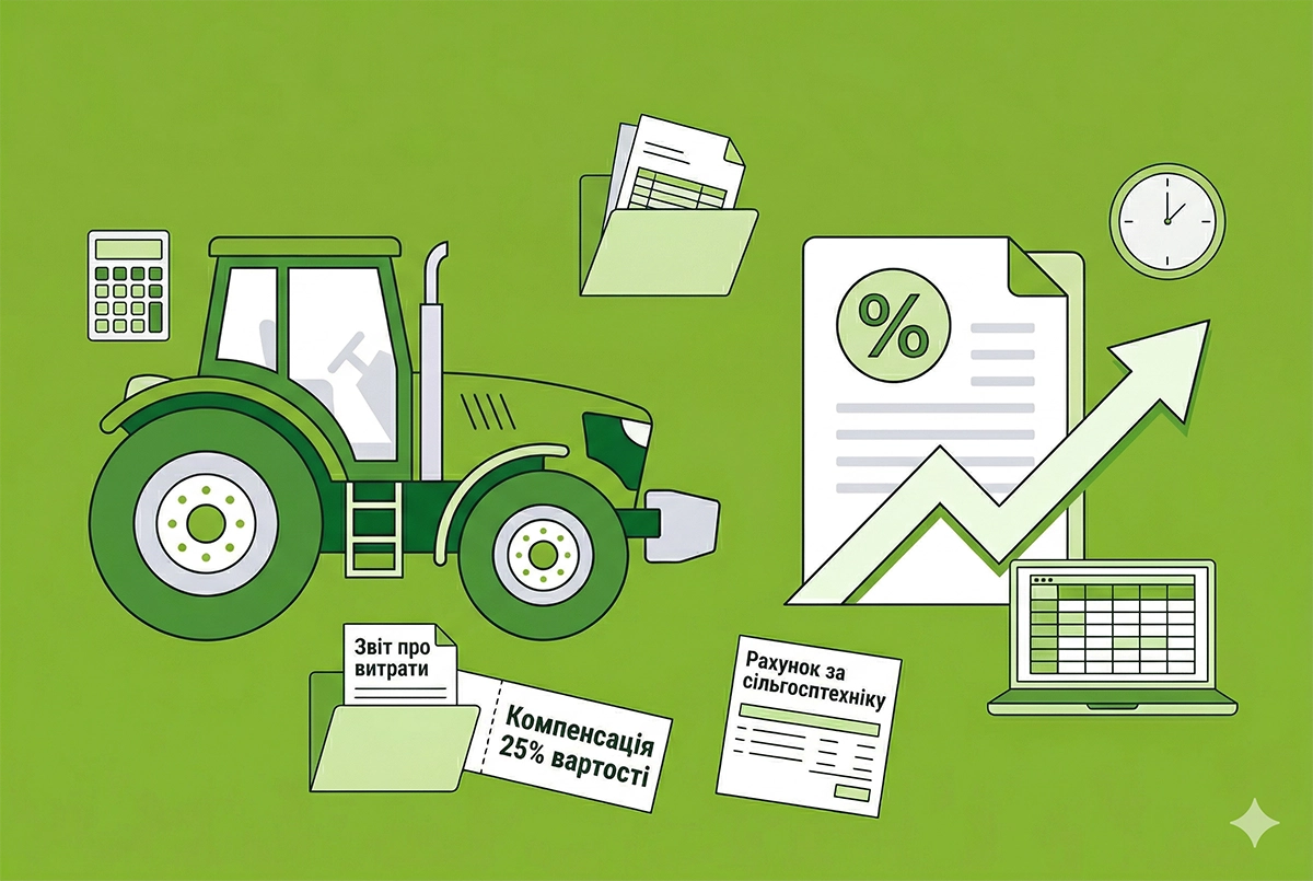 Компенсація 25% надається за сільськогосподарські техніку та обладнання, яка містить не менше 60% українських матеріалів та комплектуючих. Для окремих категорій – комбайнів, тракторів, самохідних обприскувачів і зерновозів – діють спеціальні умови.