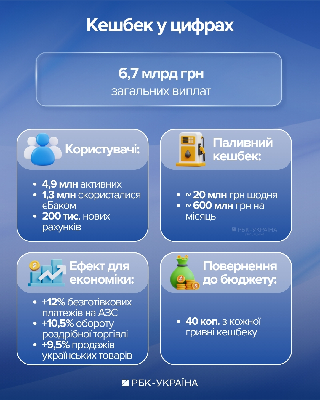 Уряд витратив за програмою Національного кешбеку близько 7 млрд грн (Інфографіка РБК-Україна)