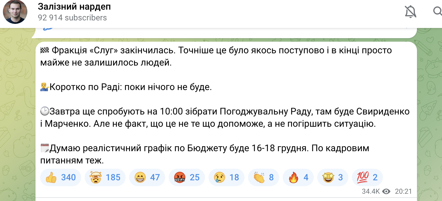 І ось, схоже ухвалення в цілому Бюджету знову переноситься. Як зазначив Я. Железняк, реалістичний графік - 16-18 грудня.