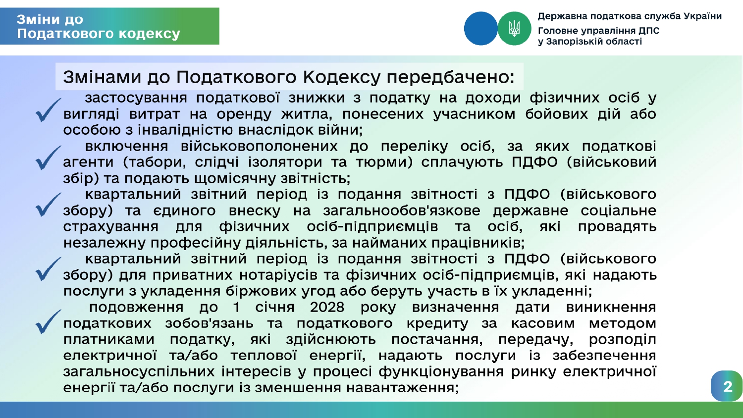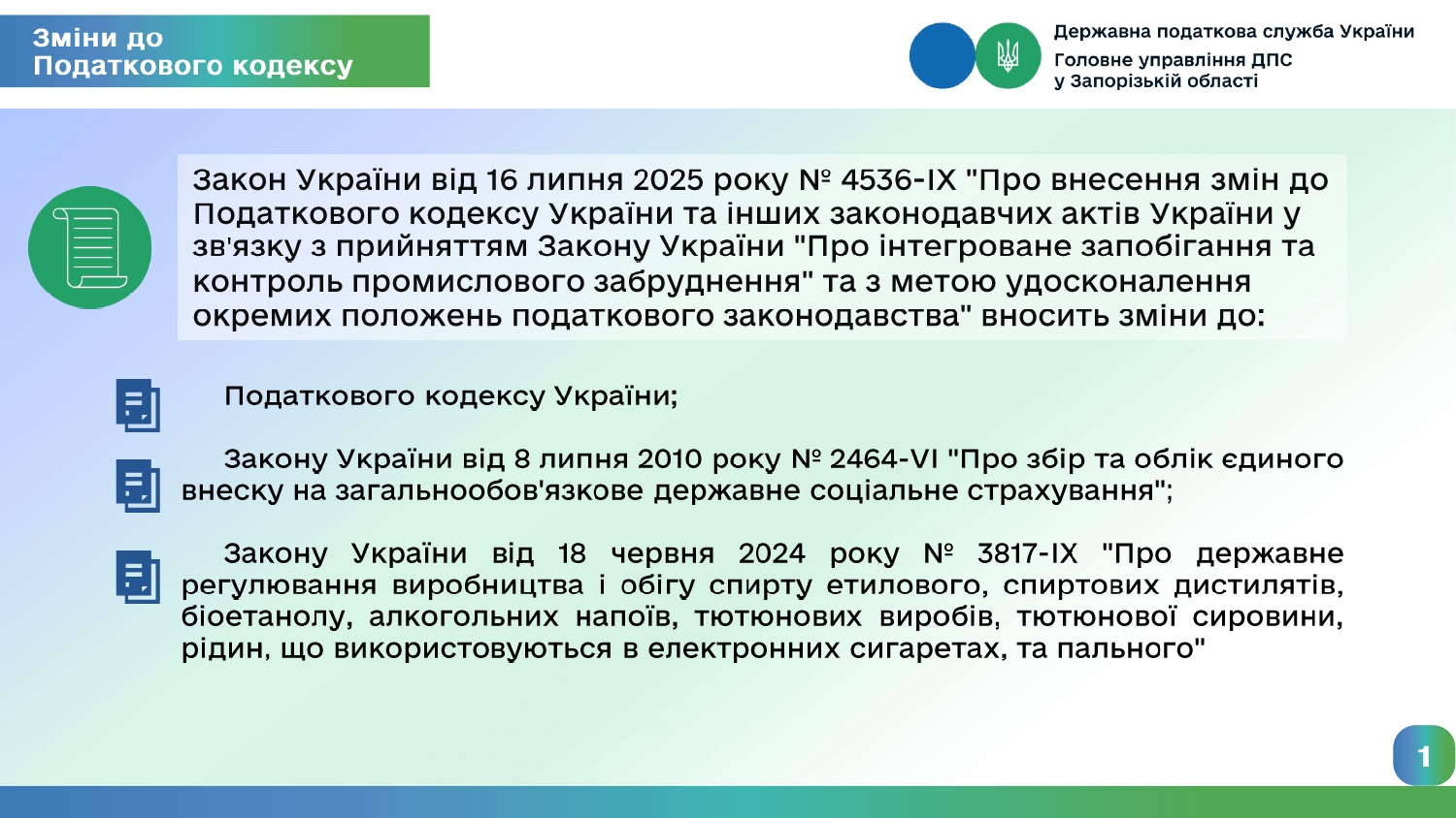 ДПС у Запорізькій області нагадує, що з 1 жовтня 2025 року набувають чинності більшість змін до Податкового Кодексу, запроваджених Законом України від 16 липня 2025 року №4536-ІХ.