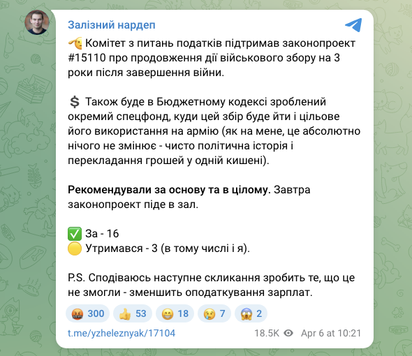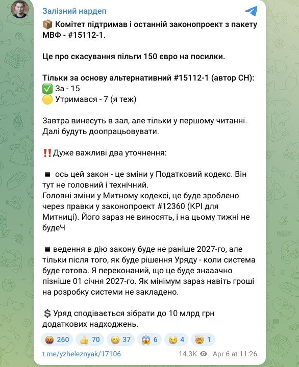 Комітет ВРУ рекомендує прийняти за основу та в цілому урядовий законопроєкт №15110. 7 квітня законопроєкт піде "в зал".