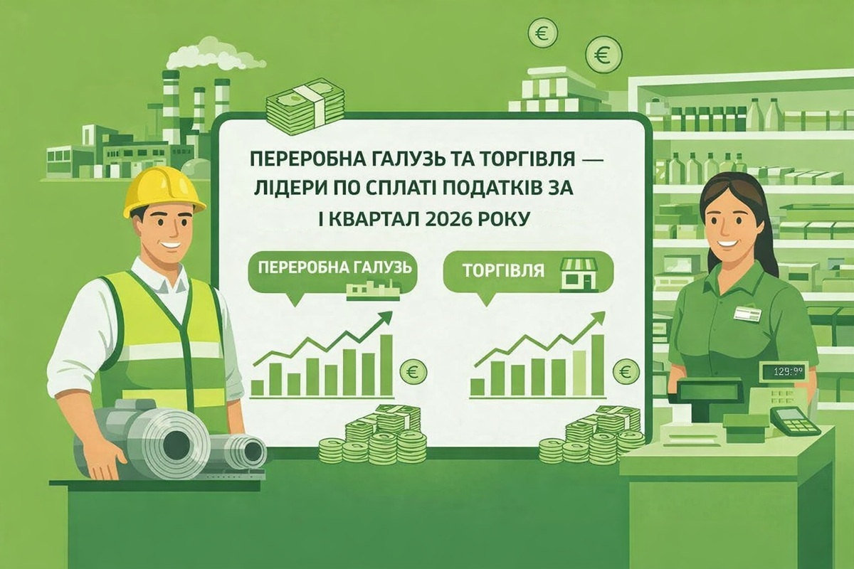 Переробна промисловість і торгівля нині формують понад 34 % усіх надходжень до зведеного бюджету за січень – березень 2026 року. Про це повідомила в. о. Голови ДПС Леся Карнаух.